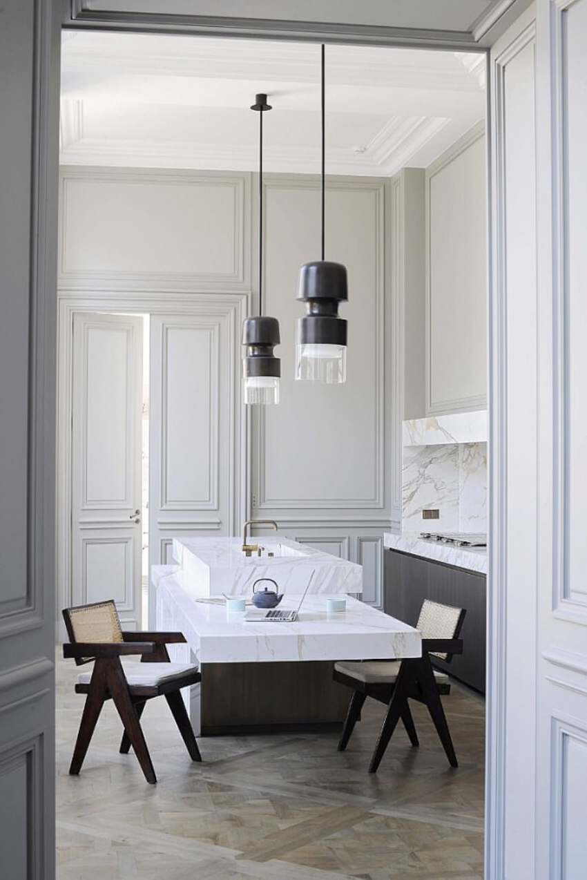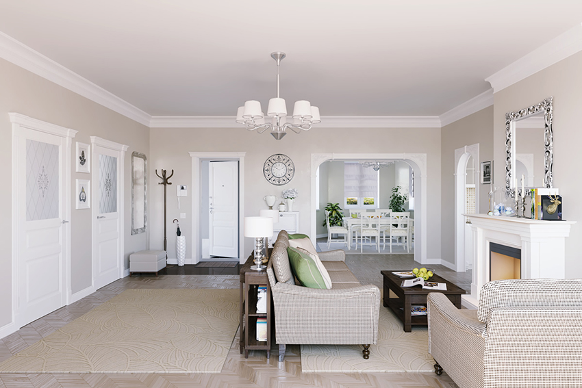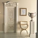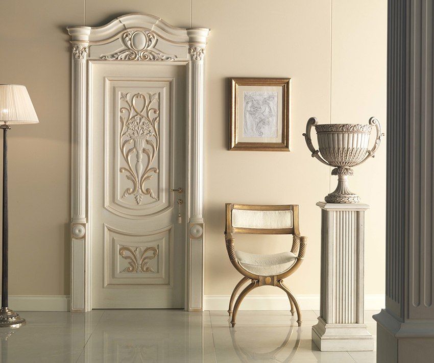 Den klassiske stil er den ældste designtrend, der bruges i det indre af boligarealer, som kombinerer elementer fra forskellige kulturer. I dette tilfælde bruges dørkonstruktioner som en ekstra detalje, der kontrasterer eller modvirker finishens farveskema.