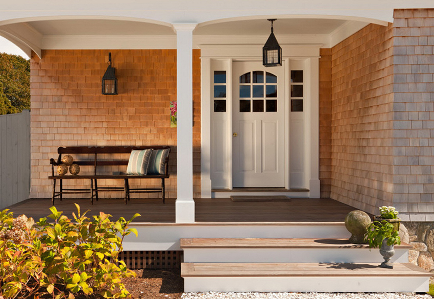 For at sprede udseendet på indgangsdørene kan du bruge forskellige elementer: