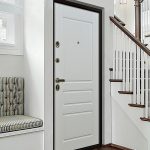 De hvide døre, der findes i magasinerne på billedet i det indre af lejligheden, er ikke kun mellemrumsdøre. Denne farve er også relevant for indgangskonstruktioner. Egenskaberne af den hvide farvetone vil være nyttige for husejere i regioner med et varmt klima. Den konstante udsættelse for sollys forårsager opvarmning af overflader. Dog er hvide døre mindre tilbøjelige til dette.
