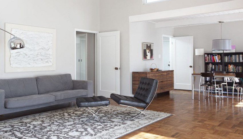 Meget ofte kan du se på billedet hvide indvendige døre i det indre af lejligheder med et begrænset område. Sådanne strukturer udvider rummet visuelt og fylder det med lys og luftighed. Denne fordel er især fordelagtig, hvis lejligheden har en lang mørk korridor.