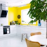 For at dekorere et vindue i køkkenet uden gardiner kan du lave en vægaccent, der vil tiltrække opmærksomhed