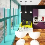 - spejlglas enhed. Det skjuler fuldstændigt køkkenet fra nysgerrige øjne, men reducerer belysningskvaliteten i rummet betydeligt.