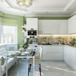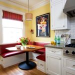 Du kan ofte finde billeder af køkkener i nærheden af vinduet, hvor der er et hyggeligt og behageligt opholdsområde. Placering af det såkaldte loungeområde på vindueskarmen tilføjer køkkenet personlighed og dekorerer vinduesområdet. Denne indretningsmulighed kan bruges både i et stort rum (så kan du bruge ekstra møbelelementer) og i et lille køkken, der har en bred vindueskarm.