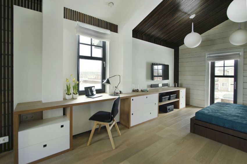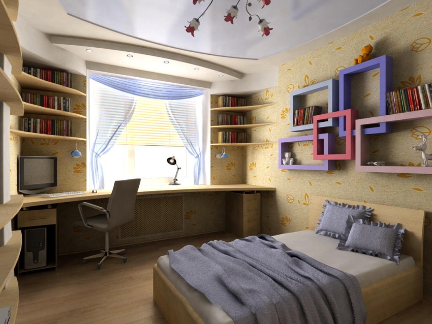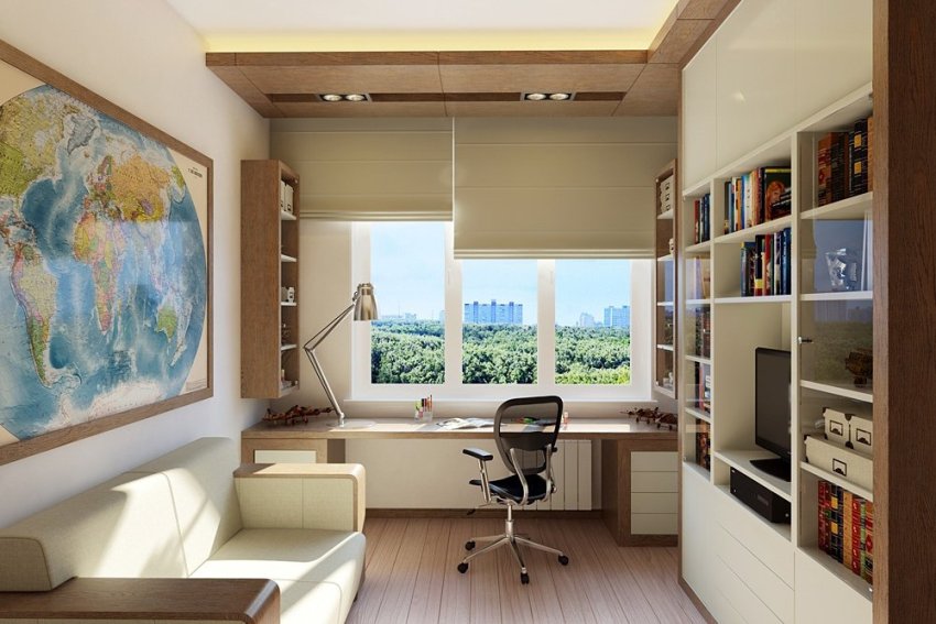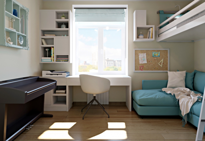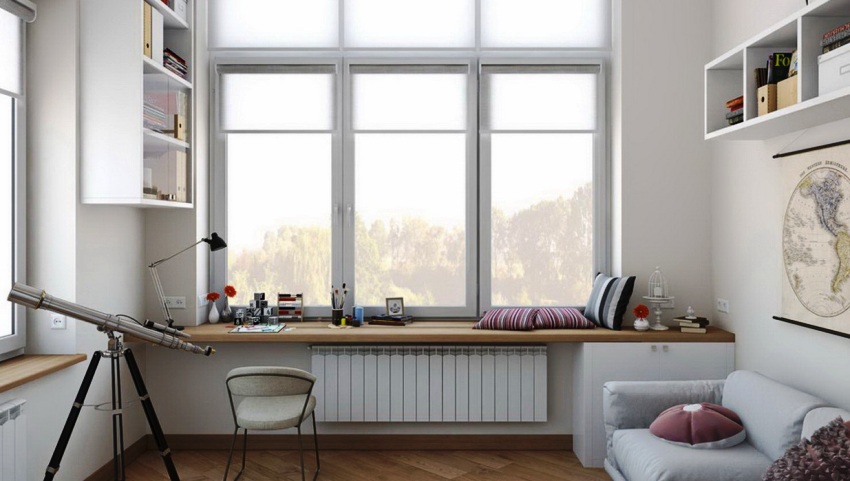Hvis vi taler om det rum, hvor den studerende bor, er det værd at bemærke, at vindueskarmen i teenagers værelse er en meget god løsning. Med sin hjælp kan du ikke kun gemme dyrebare kvadratmeter, men også give fremragende belysning i barnets arbejdsområde, hvilket er meget vigtigt for synet.