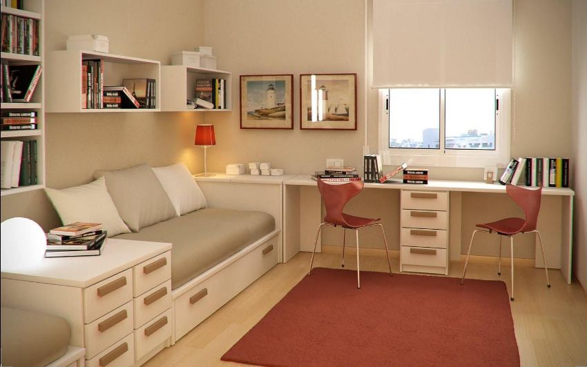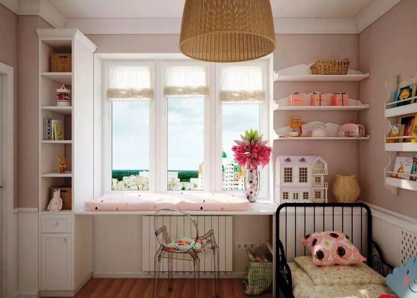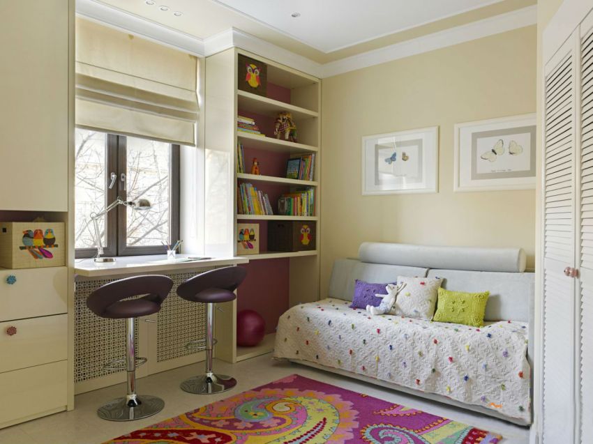 Denne løsning vil være særlig relevant for små lejligheder. I øjeblikket er det takket være de mange designideer muligt at indrette et lille rum på en sådan måde, at der vil være mange gratis kvadratmeter. For eksempel, hvis du designer et vindueskarmbord i et rum til et barn, er der ingen grund til at tage uvurderlig plads væk for at installere et separat bord, især da det simpelthen er umuligt at undvære et bord i huset, hvor børn bor.