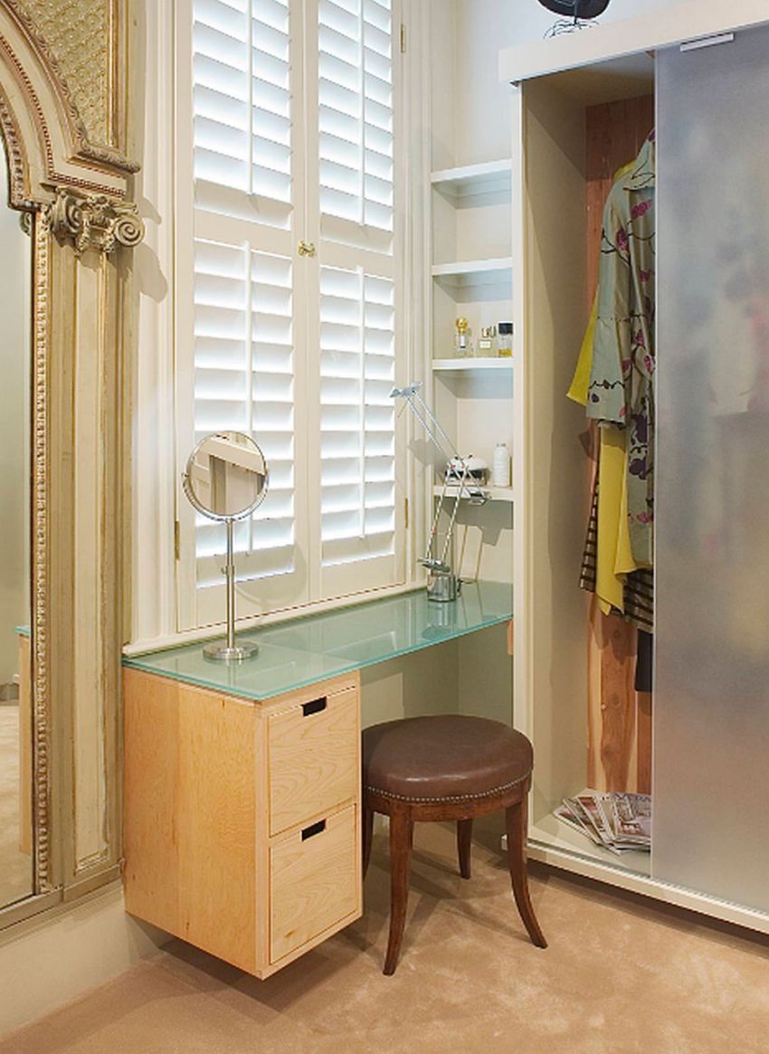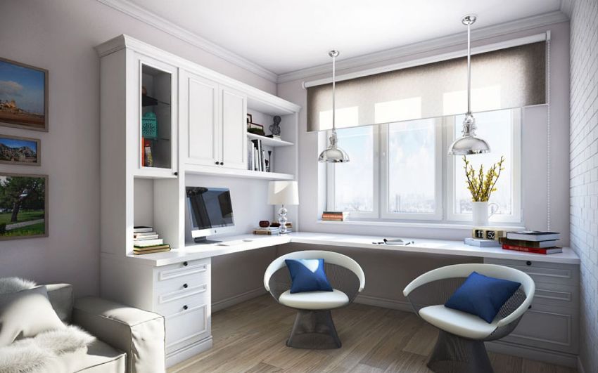 Efter at have besluttet at bruge et bord i stedet for et vindueskarm, er vinduesåbningen ofte udstyret med ekstra skabe og hylder. I dette tilfælde bliver den præsenterede struktur og rummet ved siden af vinduet til et behageligt sted at arbejde, som er oplyst af naturligt sollys.