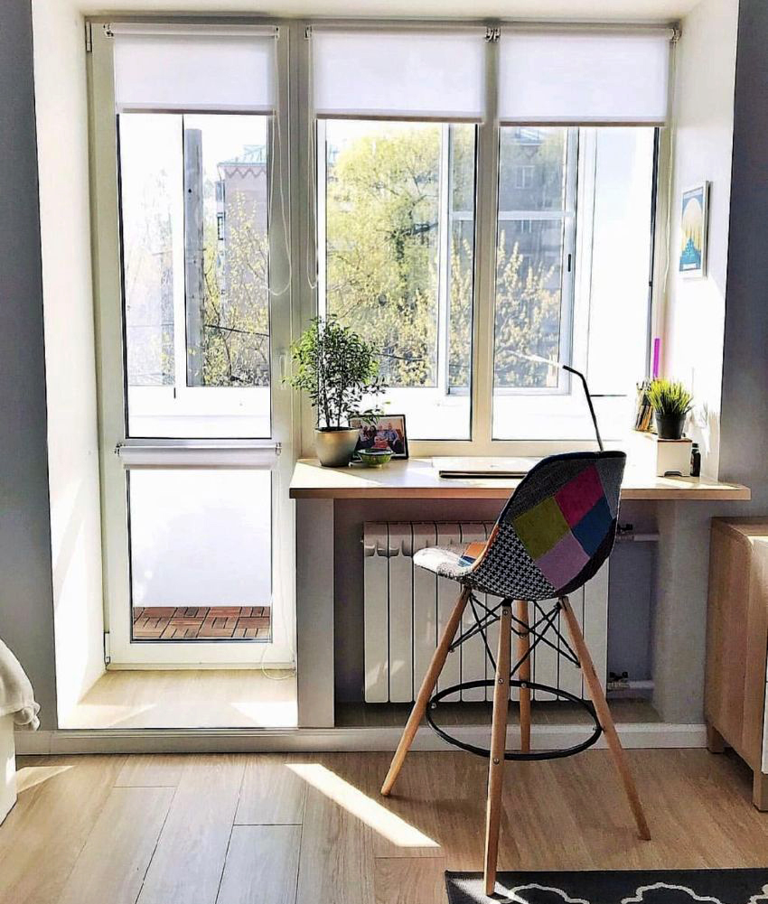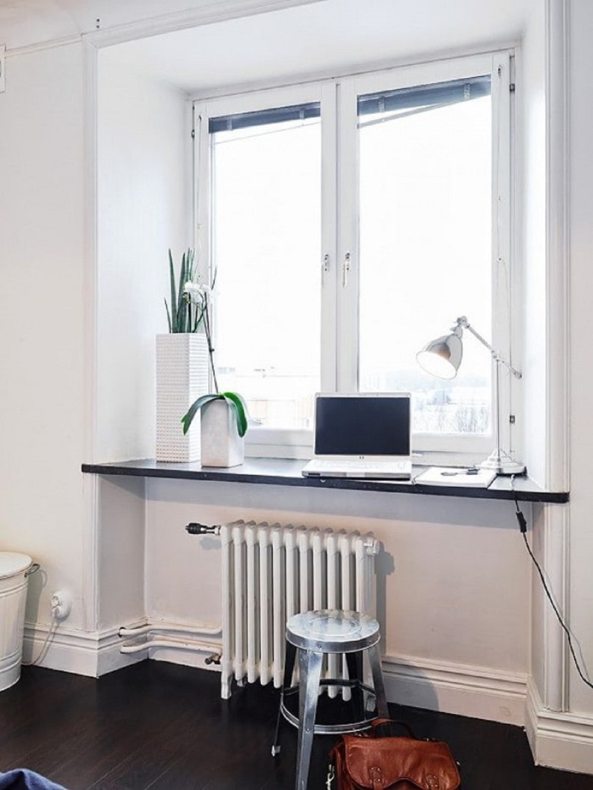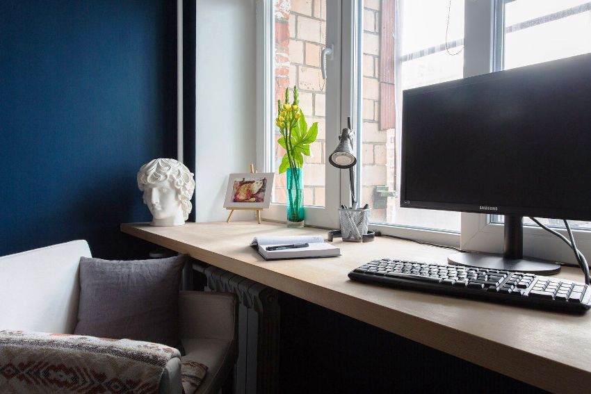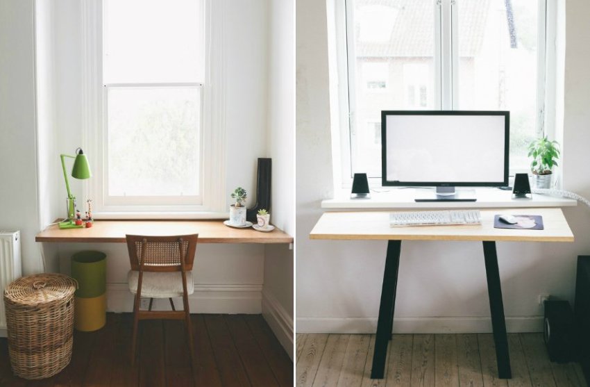 Skrivebord ved vinduet i stedet for et vindueskarm: miniature hjemmekontor