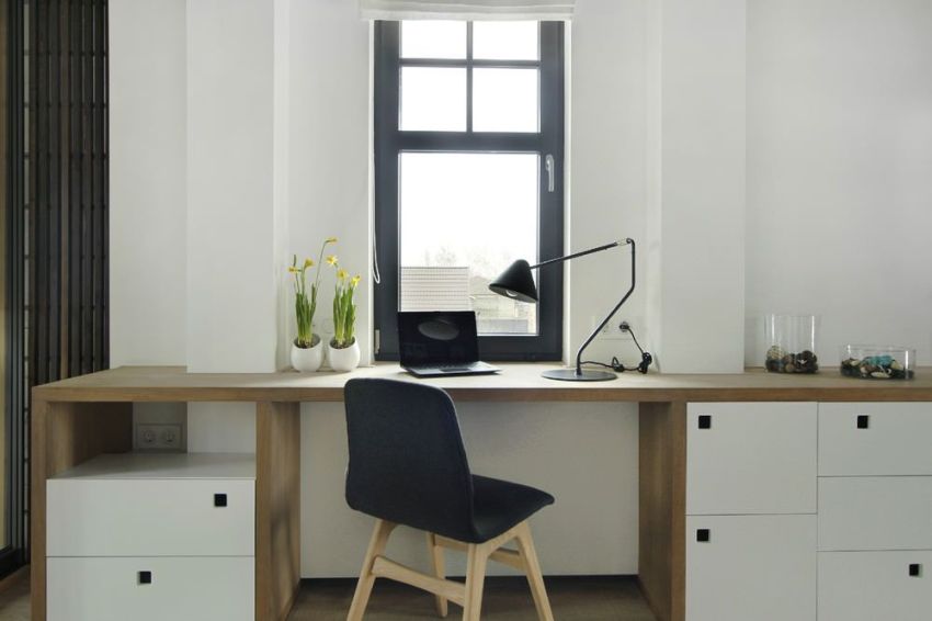 Et bord med vindueskarm i et studiemiljø vil skabe et moderne miljø og øge produktivitetsniveauet. Dette skyldes det faktum, at det under arbejdet vil være muligt at skifte opmærksomhed og beundre den maleriske udsigt, der åbnes fra vinduet. Samtidig er det kun sjældent nødvendigt med en bordlampe - hovedsageligt om natten.