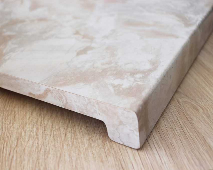 Bemærk! Vægten af natursten er ret betydelig. I denne henseende er der behov for yderligere understøttelser under installationen af en sådan bordplade. For at bevare den naturlige skygge over tid skal denne vindueskarm behandles med en polymer.