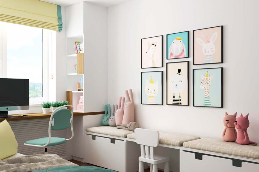 Det er dette emne, der er et sted for tegning, modellering, spil og udvikling af aktiviteter. Et bredt vindueskarmbord giver ubegrænset plads til børns fantasi. Her vil dine yndlingslegetøj og bøger med eventyr være i stand til at slå sig godt ned.