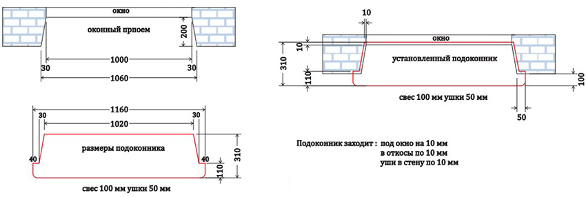 For at vælge den korrekte størrelse og tykkelse af vindueskarmen i plast skal du tage hensyn til fordybningerne fra det forrige produkt efter udskiftning. Ofte er nye vindueskarme 0,5-1,5 cm længere end gamle, bredden kan øges med 0,3-0,4 cm, fordi metalplastvinduer i sammenligning med gamle trærammer er 4-5 cm tyndere.