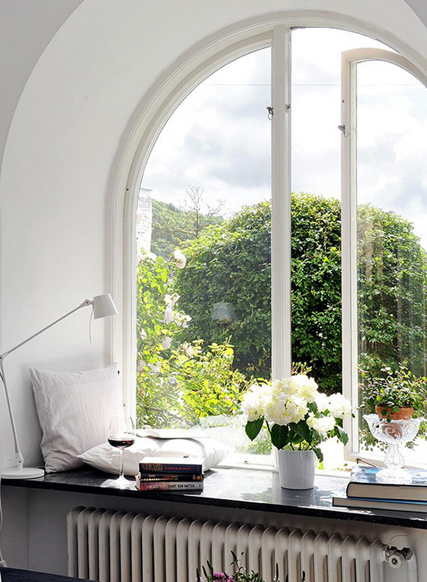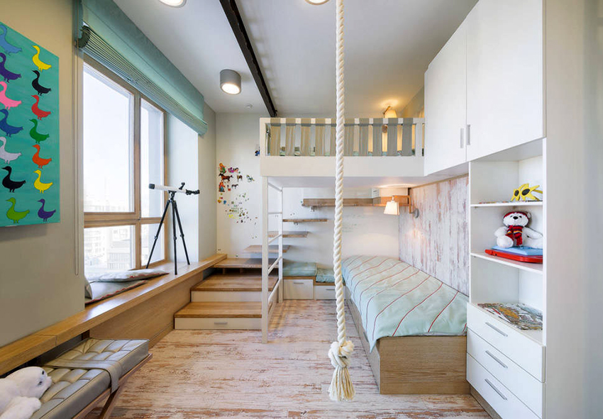 - Soveplads under vinduet. Det er vindueskarmen, der betragtes som den mest funktionelle og praktiske løsning. Det er især vigtigt at organisere denne mulighed i tilfælde af, at der er høje og voluminøse vinduer i huset.