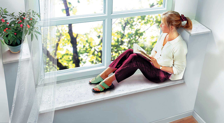 - Stort valg. På grund af at vindueskarmen af plast kan præsenteres i enhver farve, får vinduet et interessant og individuelt design. Du kan også vælge muligheder for en sten eller et træ.