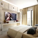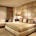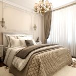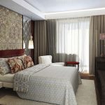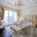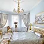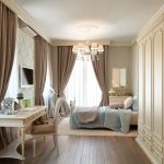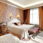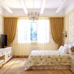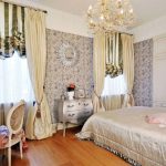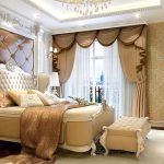 Moderne gardiner i soveværelset, dekoreret med lambrequins, bringer blød højtidelighed og diskret luksus til interiøret. Det klassiske design af et soveværelse uden dette dekorative element er simpelthen ufuldstændigt. Stive lambrequins gør rummet pænt, og vinduesdekorationen er raffineret.