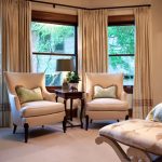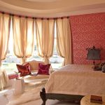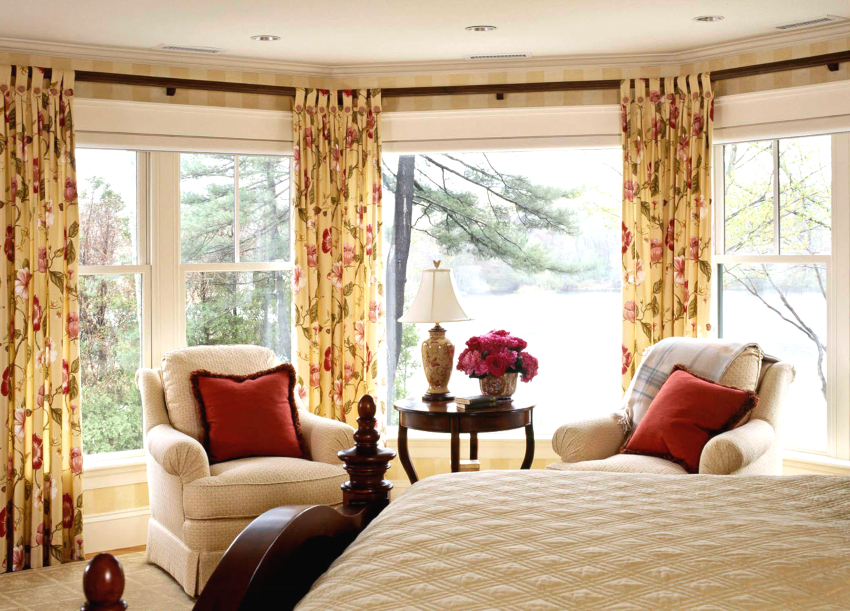 Nyttige råd! Til karnapvinduet skal du ikke vælge gardiner lavet af stoffer med lyse blanke overflader. De "forstyrrer" den fulde opfattelse af naturlige dagslysstrømme.