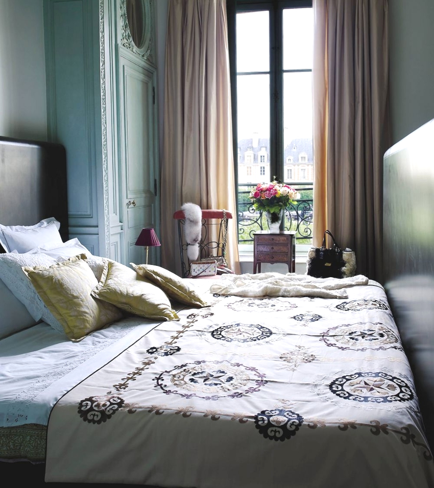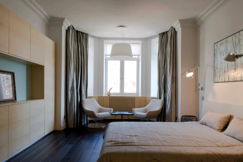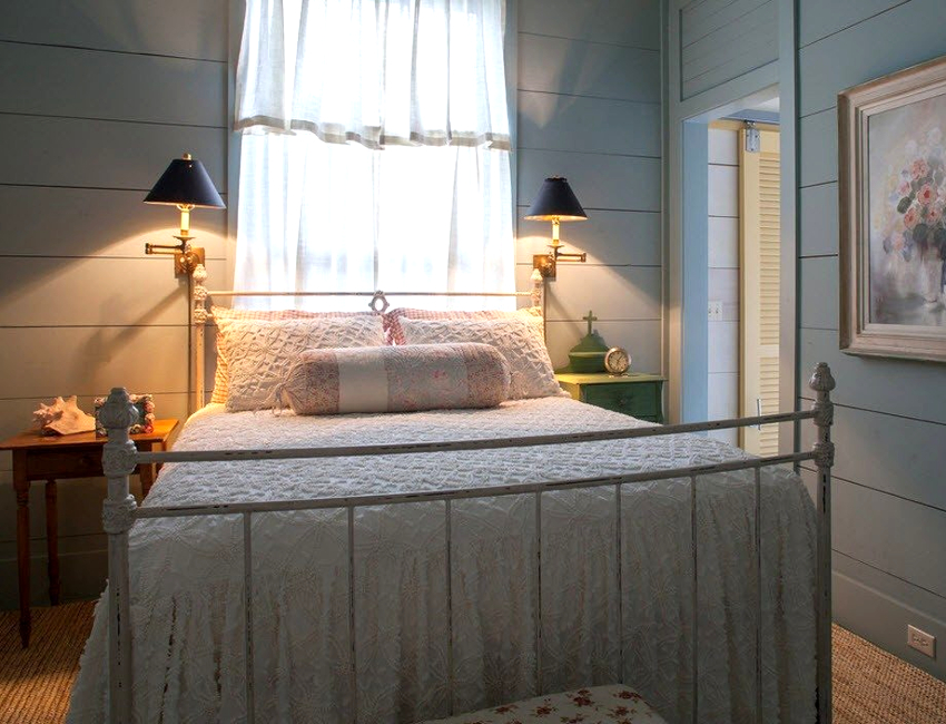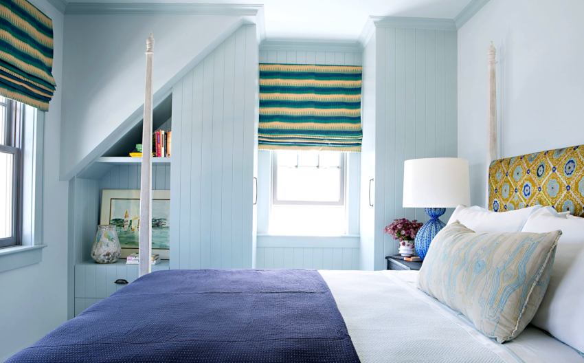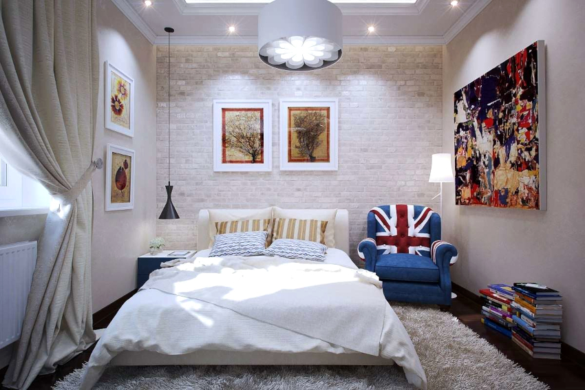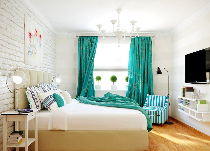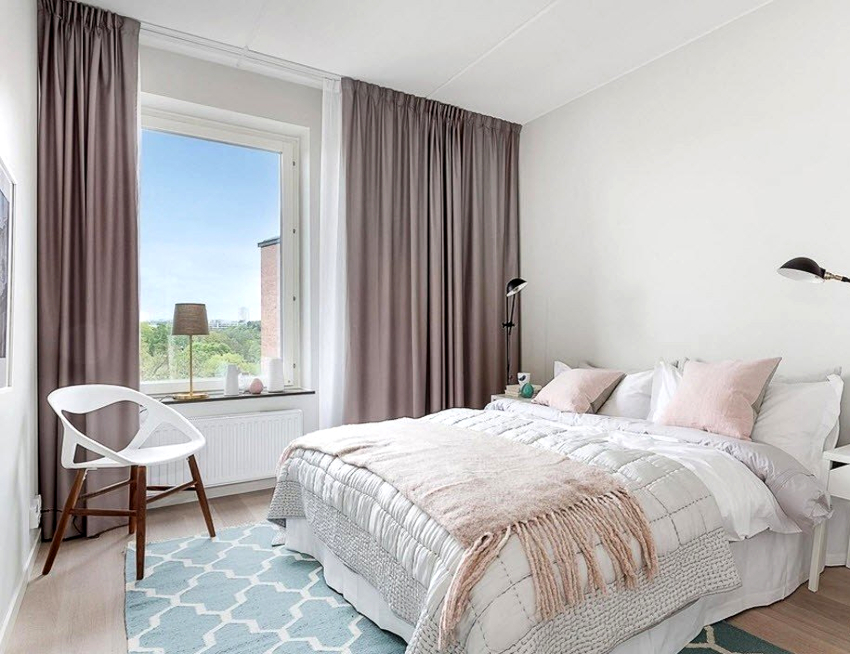 For at et lille rum ikke virker endnu mindre, kan du ikke overbelaste soveværelset med store gardiner.