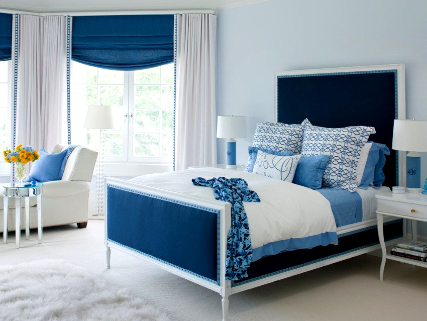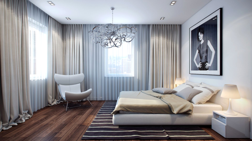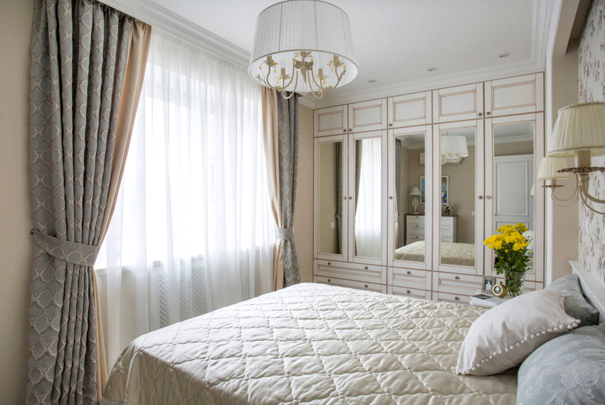 Gardiner i et hvidt soveværelse: kontrast eller monokrom