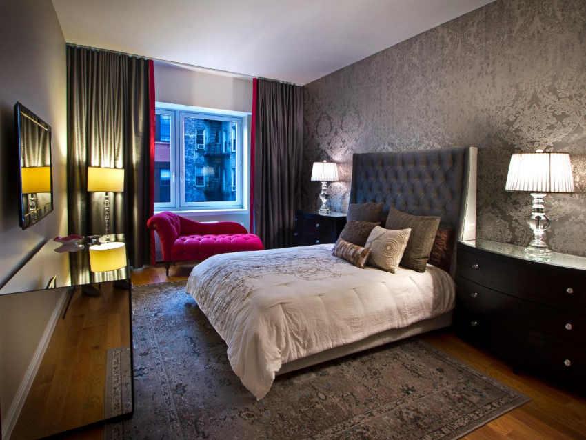 Nyttige råd! Det er værd at bruge burgunder i det indre af firkantede soveværelser. Når det anvendes i rektangulære rum, er der en følelse af at være i en kasse. Det er passende at dekorere vinduer med bordeauxgardiner, der har en bredde på mindst 150 cm. Små vinduer med sådanne gardiner falder visuelt i størrelse.