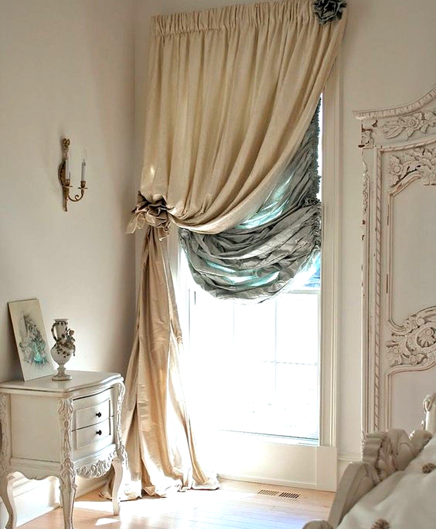 - En nem mulighed for at dekorere soveværelsesgardiner er at bruge tape. Lager som et resultat af sammentrækning er dannet ensartet, bueformet i form af pust.