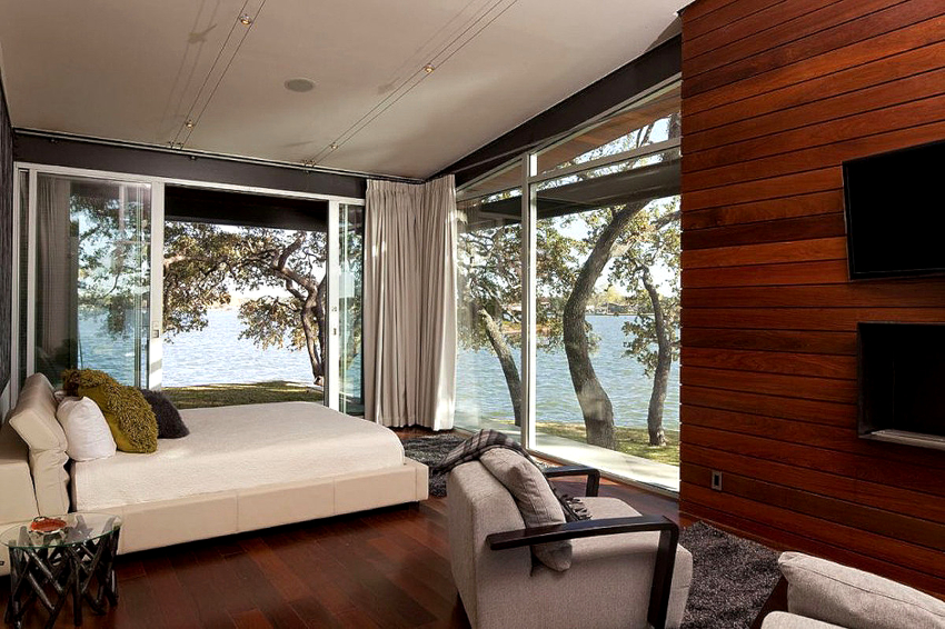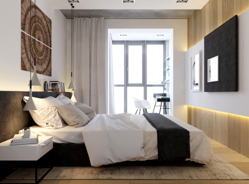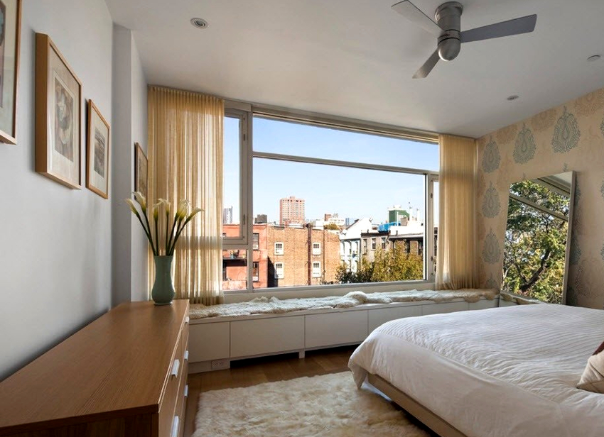 Det vigtigste punkt, der påvirker designfunktionerne ved moderne vinduer i værelser, er tendensen til at øge dem. Soveværelse vinduer er ingen undtagelse. Vinduesåbninger med et stort vindue giver meget naturligt lys, som ikke fuldt ud kan erstattes af nogen form for kunstige belysningslamper. Også ofte installeres panoramavinduer i soveværelset, dvs. fra loft til gulv.