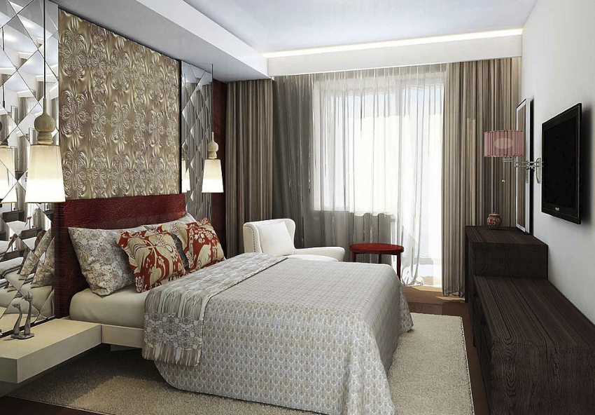 For at dekorere et vindue i et soveværelse med en lille størrelse kræves ingen specielle former eller monteringsmetoder. For at rummet ikke virker endnu mindre, så gardinerne til soveværelset ikke overbelaster interiøret, skal visse krav overholdes:
