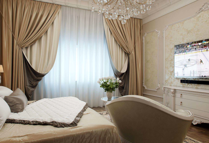 Nyttige råd! Før du vælger gardiner til soveværelset, er det værd at bestemme deres æstetik både i åben og lukket tilstand, så der senere ikke er nogen følelse af utilfredshed med deres udseende.