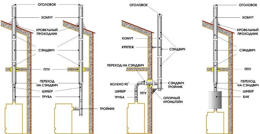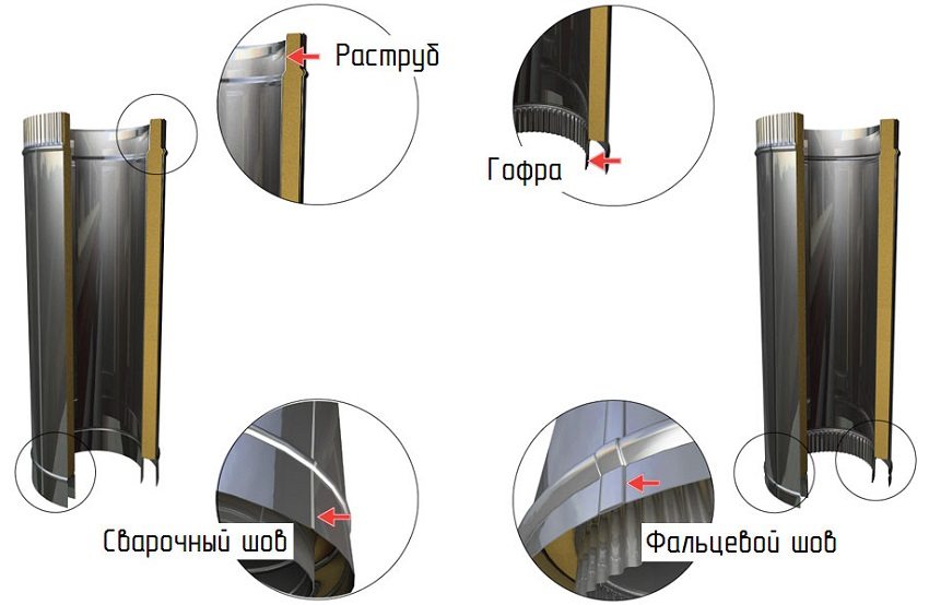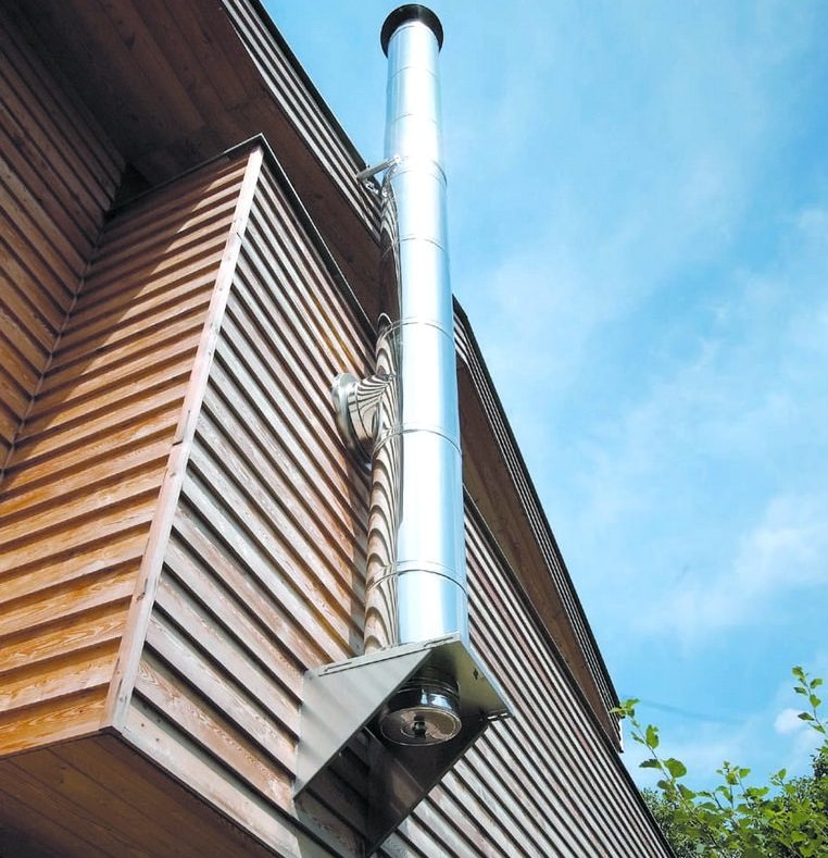 de indre rør i sandwichkonstruktionen er forbundet med den øvre kontur af røret til den nedre, og de ydre er omvendt. På den ene side sikrer dette uhindret røgfjerning, på den anden side beskytter det systemet mod fugt;