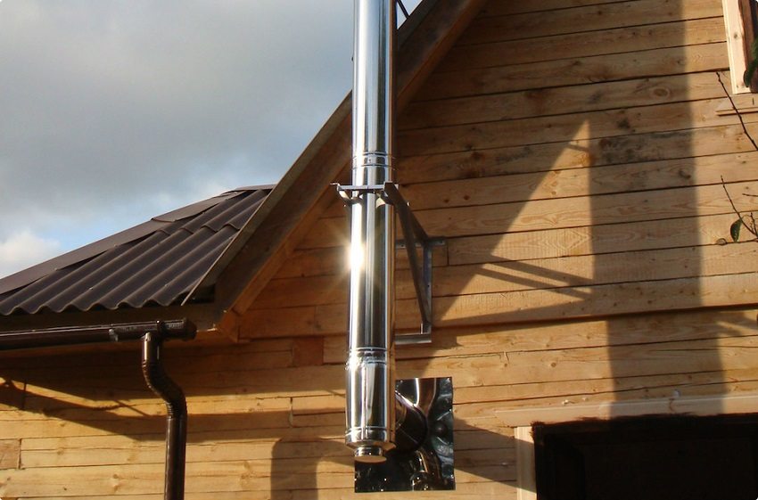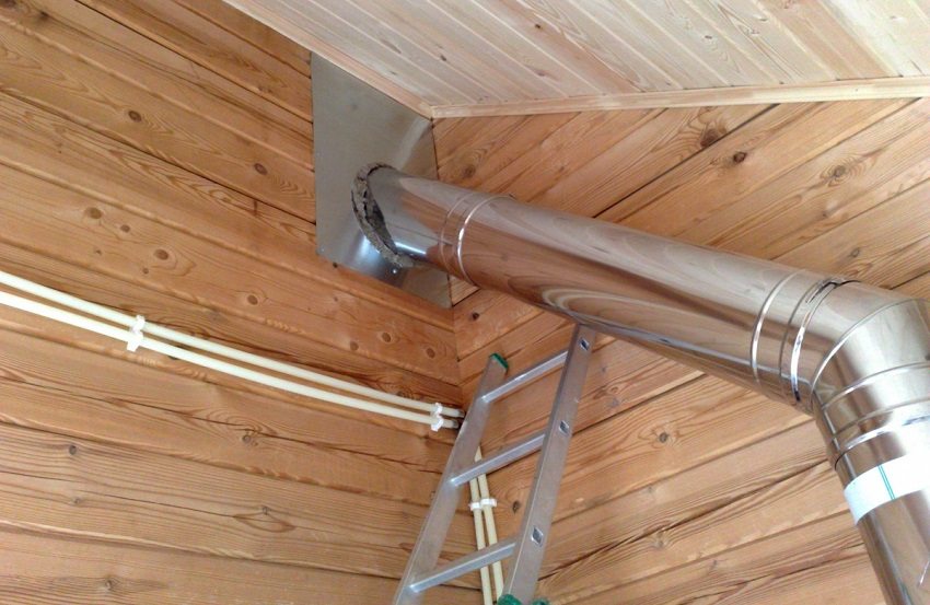 installationen af skorstenen gennem væggen ledsages af enheden af isolerede rør på disse steder;