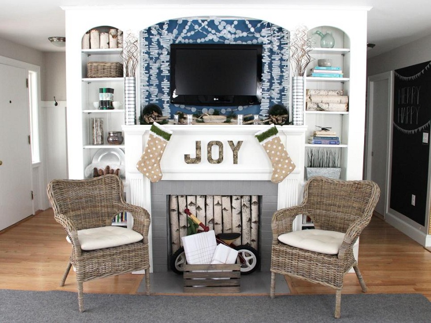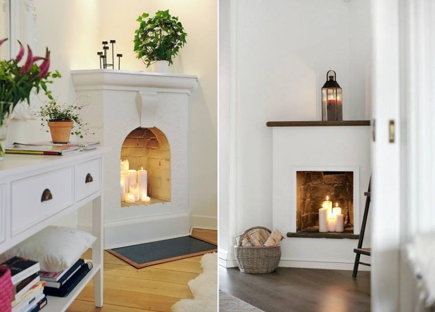En falsk pejs kan installeres i ethvert rum og dekoreres som du ønsker med genstande uden frygt for ild