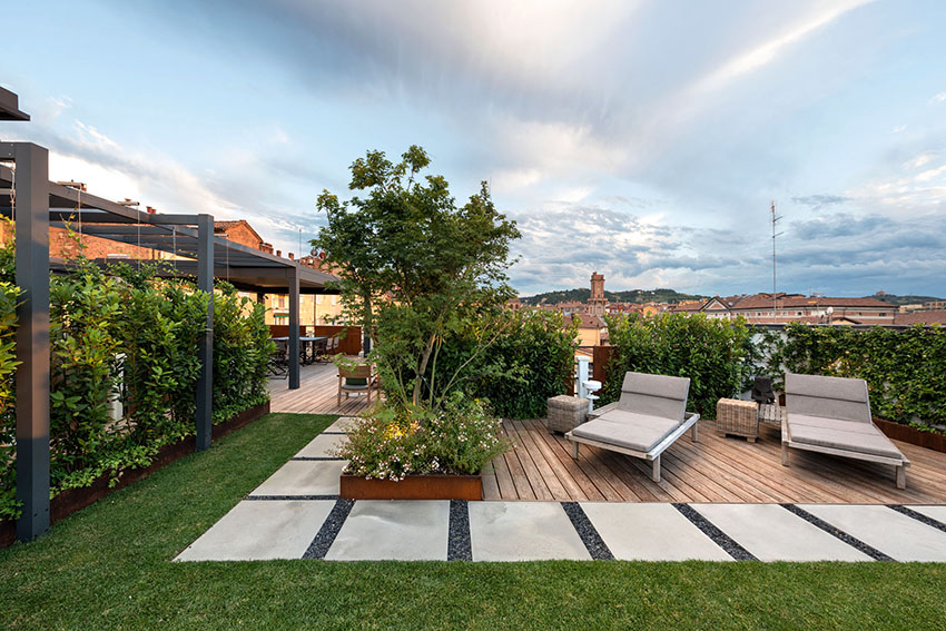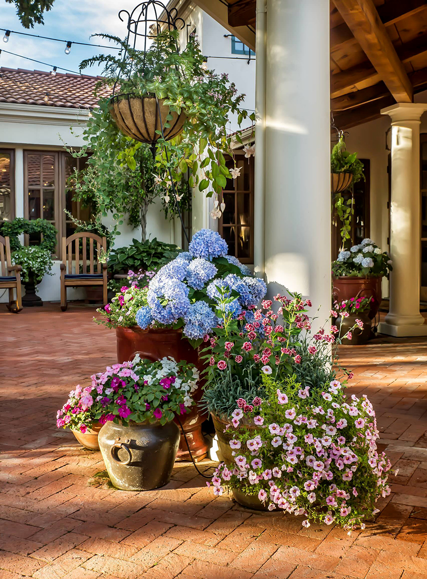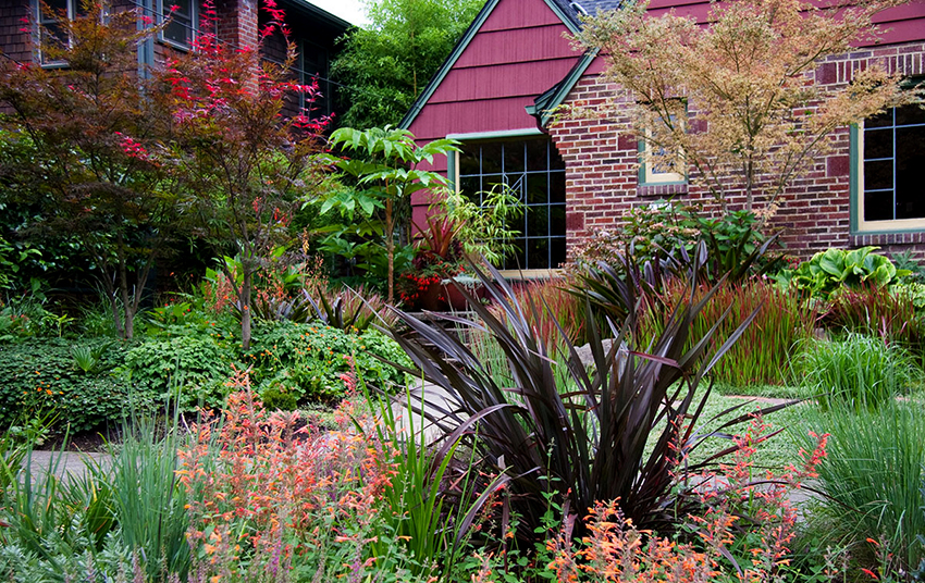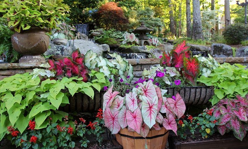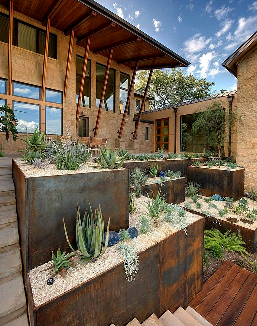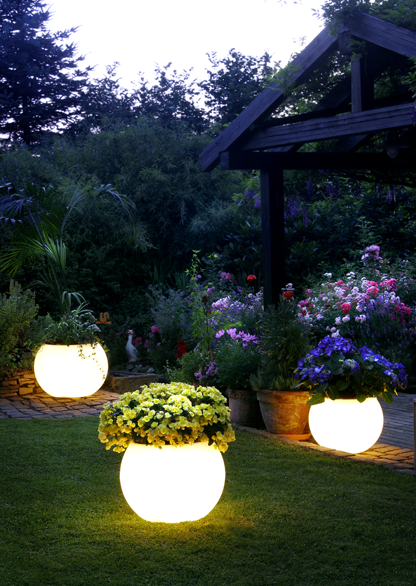 Hvis du ikke har tid til at klippe plæner ofte, kan du arrangere blomsterpotter med uhøjtidelige prøver i hele haven. I kolde perioder opbevares de indendørs, og om foråret, når de første varme dage kommer, føres de ud på gaden. Således er det muligt at dyrke varmekærlige planter som citron, mandarin, cypress og andre.
