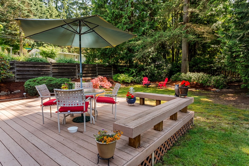 Hvis du planlægger at oprette lysthus eller en lille terrasse, og ejeren er begrænset i midler, kan du erstatte dem med en let pergola ved at plante hængende roser, vinstokke eller klematis omkring den. Du kan gemme dig fra irriterende naboer bag interessante strukturer - levende trelliser eller trelliser. De skaber følelsen af en mur, men rod ikke pladsen.