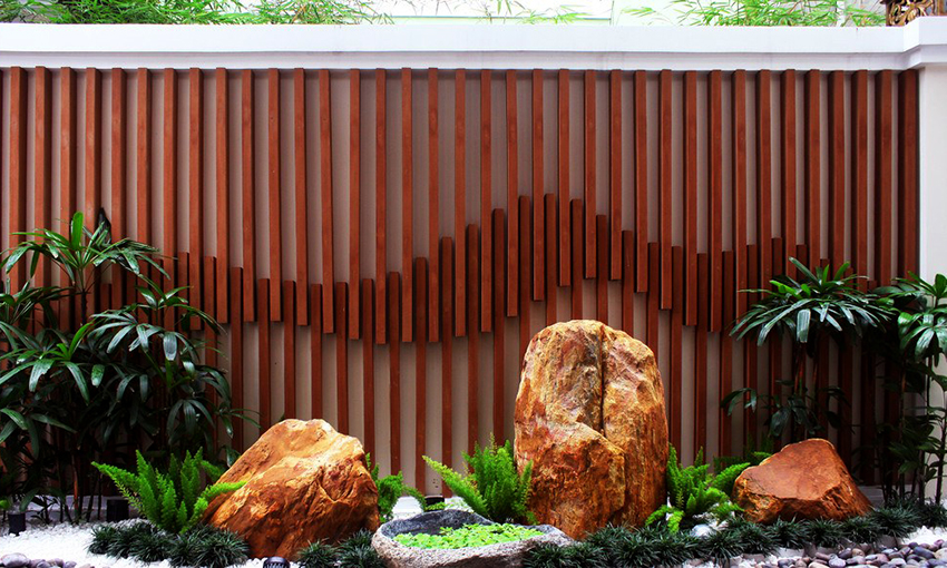 På mere åbne områder ser skærme eller skærme af naturlige materialer godt ud. De kan betragtes som unikke elementer i designet af gården til et privat hus. Billeder af moderne huse med lignende mesterværker, ofte lavet i hånden, er iøjnefaldende.