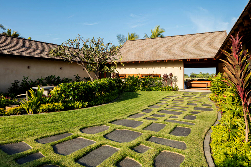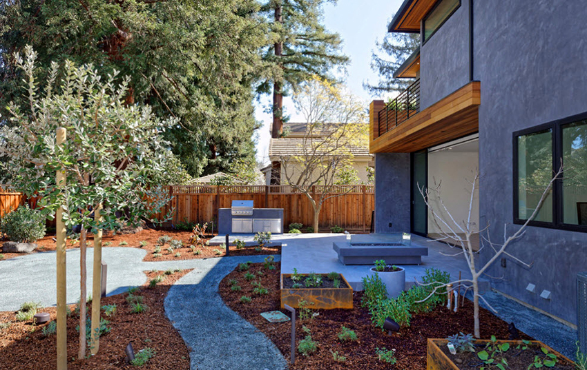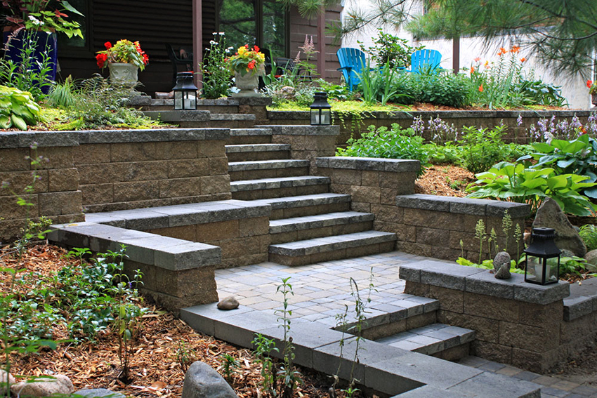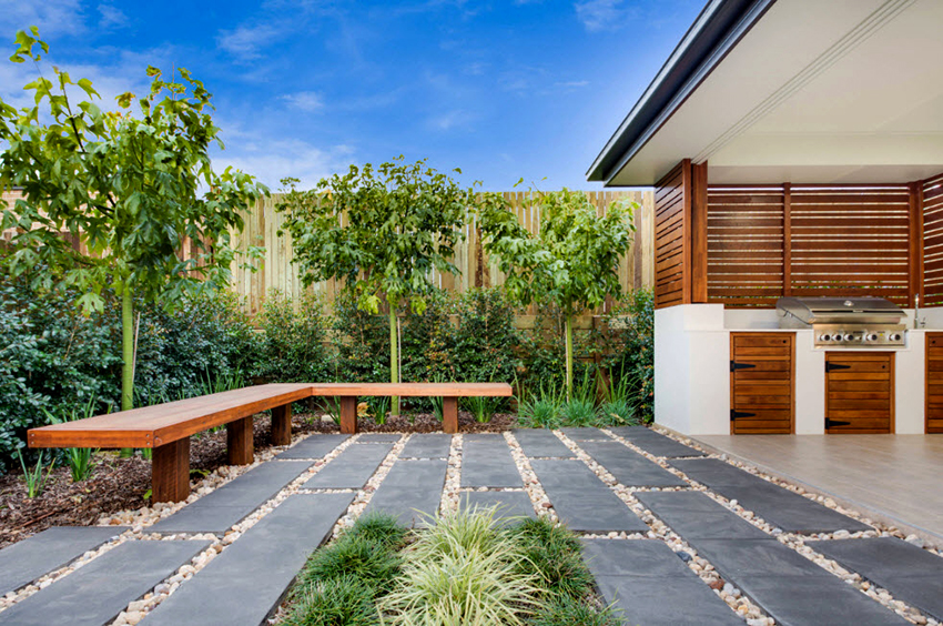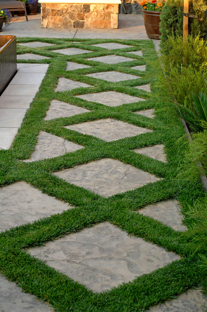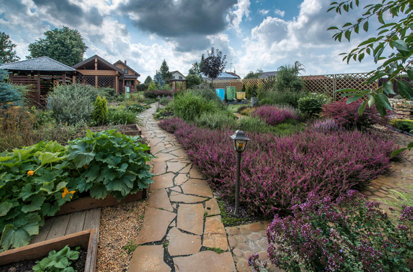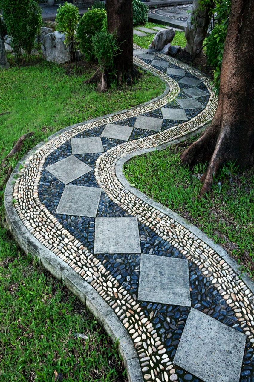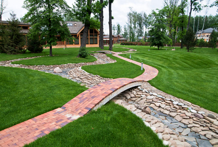 Sådanne originale stier skiller sig godt ud på baggrund af næsten ethvert design af gården i et privat hus. Billeder af moderne gårde designet på denne måde er vist nedenfor.