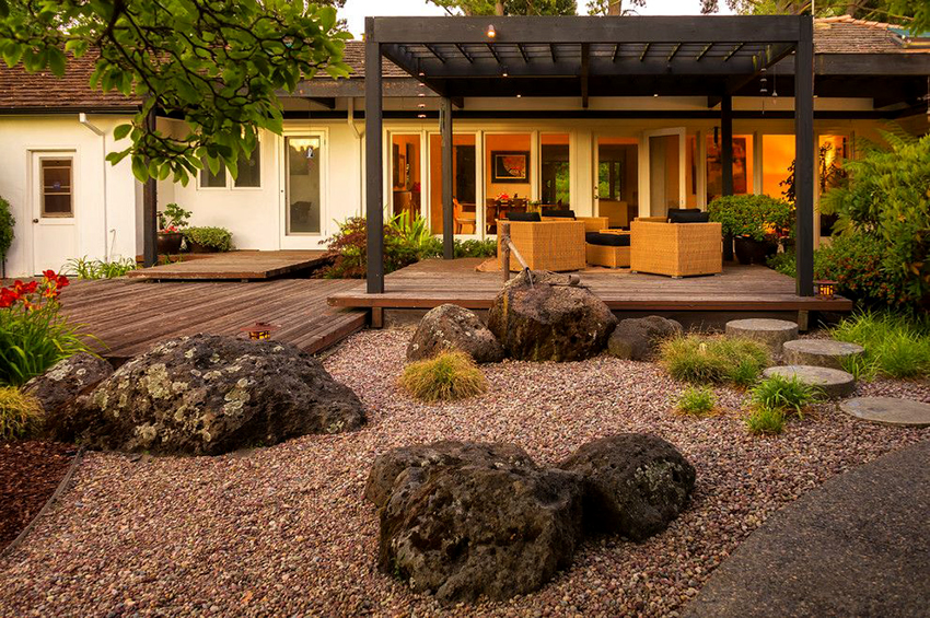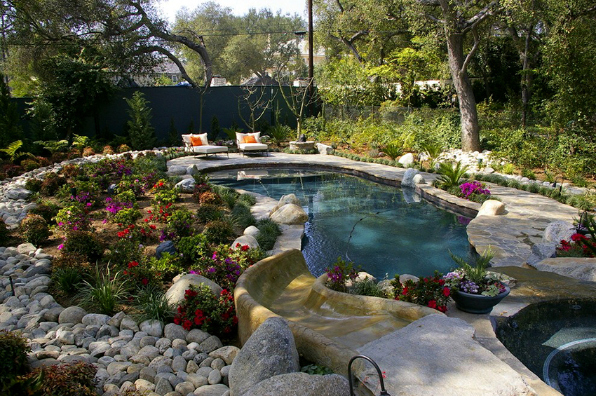 Vi skal også tænke på yderligere zoner. Hvis familien har børn, er det værd at udstyre legeplads... Du kan forestille dig et picnicområde på græsset, bygge en rigtig pool og endda udstyre en japansk zenhave. Det hele afhænger af, hvor ofte driften af sådanne sektioner af gården er planlagt.