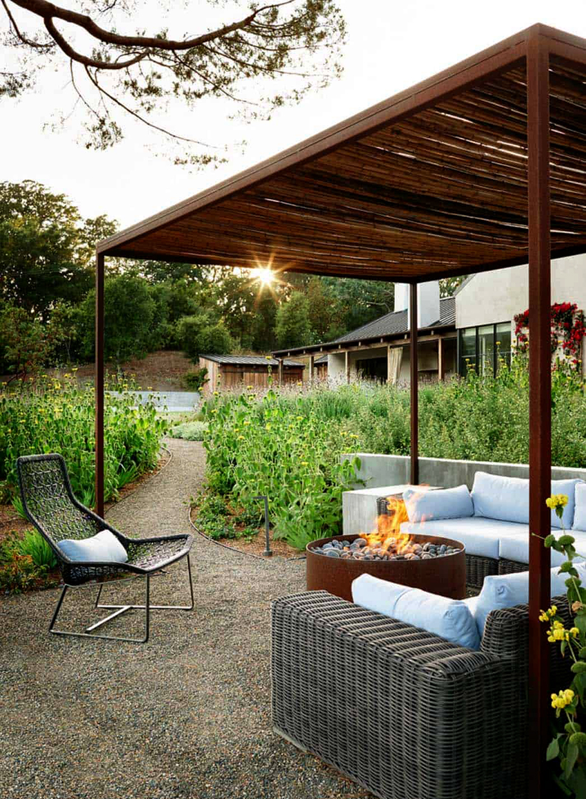 Skærme skaber ekstra skygge i gårdområdet og til en vis grad beskytter det indvendige rum mod vinden. Flodskærme, bambusmåtter eller vinstokke kan bruges som dem.