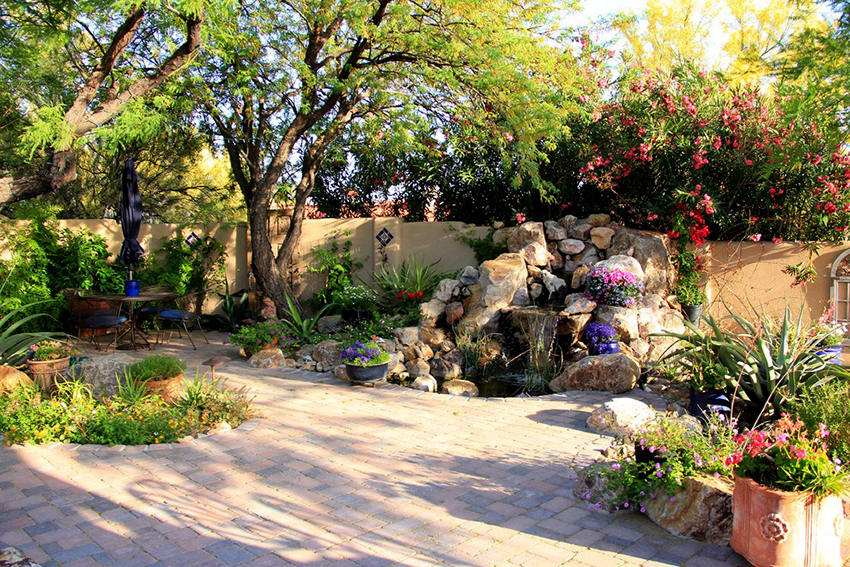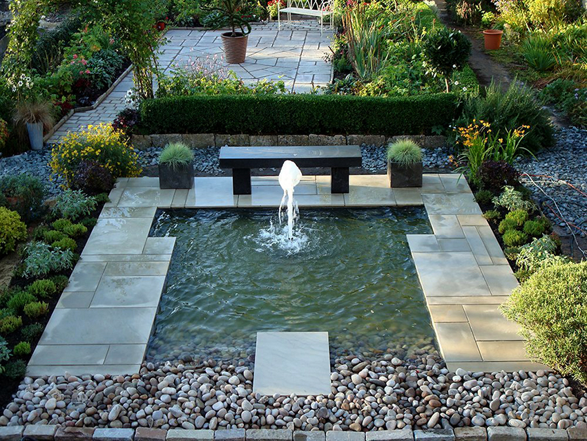 I slutningen af hovedarbejdet kan du begynde at dekorere med specielle dekorative elementer. Til disse formål bruger erfarne designere store og små skulpturer, små springvand, der placeres i rekreative områder, blomstersenge og blomsterbed. De mest populære til dekoration af gården er dyrefigurer i de mest interessante og mærkbare områder.