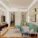 Der Komfort eines Zimmers hängt direkt von der Farbgebung ab, in der es eingerichtet ist. Das Wohnzimmer ist hauptsächlich in einem modernen Stil in hellen Farben gehalten. Helle gesättigte Farben werden ausschließlich als Akzent verwendet.