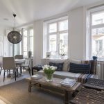 Bei der Dekoration des modernen Innenraums der Halle ist eine offene Gestaltung relevant, bei der der Gemeinschaftsraum optisch in Funktionsbereiche unterteilt ist. Möbelstücke und andere Innenelemente werden normalerweise nach ihrem Zweck gruppiert. Bei der Gestaltung eines Raumes sind Asymmetrie und ein außergewöhnlicher Ansatz willkommen.
