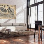 Im Innenraum eines modernen Wohnzimmers werden einzelne Oberflächen häufig durch Textur oder Druck unterschieden.