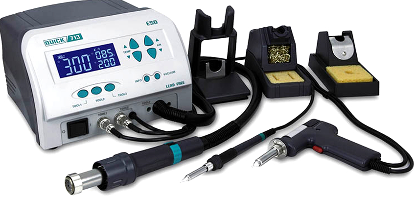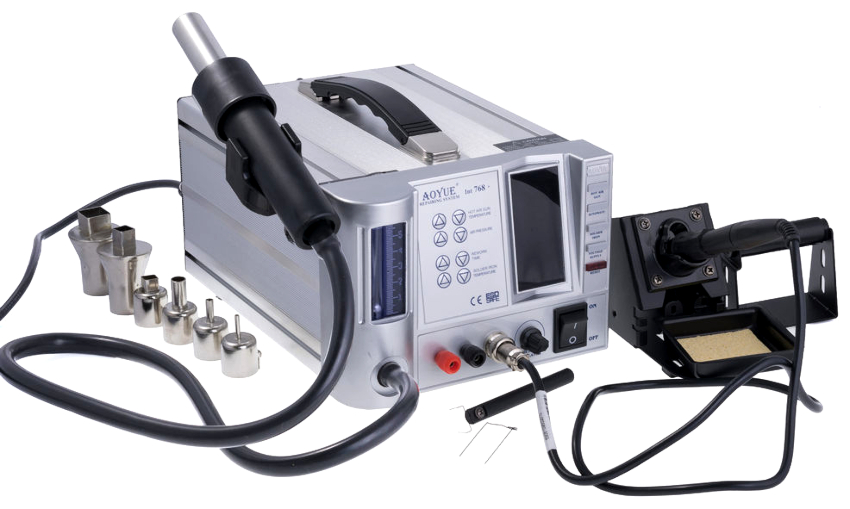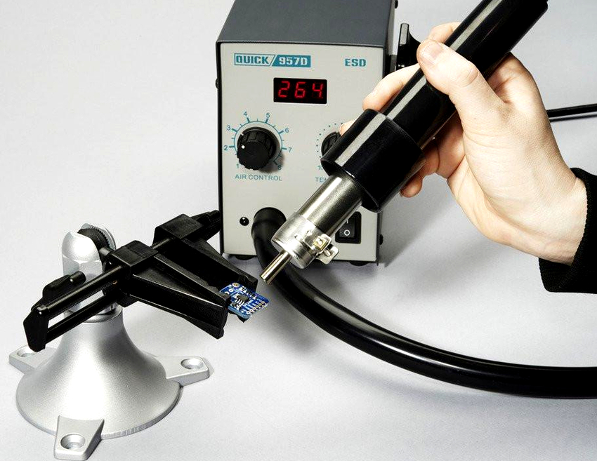 Die Herstellung von Mehrschichtplatinen und integrierten Miniaturschaltungen sowie die erhöhte Dichte von Kleinteilen mit einer großen Anzahl von Stiften erfordern den Einsatz empfindlicher und spezifischer Werkzeuge. Eines dieser Geräte ist eine Lötmaschine mit Haartrockner. Bei diesem Gerät handelt es sich um eine Reihe von Werkzeugen, mit denen Gruppen- oder Einzellöten von Bauteilen durchgeführt werden können.