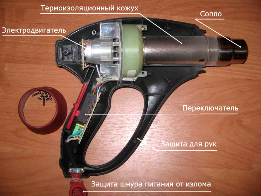 Dann müssen Sie sich um die Funktionsfähigkeit des Geräts kümmern. Das Design des Werkzeugs muss unbedingt einen Auslöser und ein Gerät enthalten, mit denen Sie die Geschwindigkeit der Luftbewegung und ihre Temperatur einstellen können. Zu diesem Zweck müssen Rheostate im Stromkreis des Geräts vorhanden sein, damit die Leistung des Instruments eingestellt werden kann.