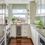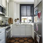 Wie renoviere ich eine Parallelküche? Diese Option ähnelt der U-förmigen Anordnung von Objekten, in diesem Fall befinden sich die Möbel jedoch nur entlang zweier paralleler Wände. Es gibt jedoch etwas mehr Raum, um sich umzudrehen.