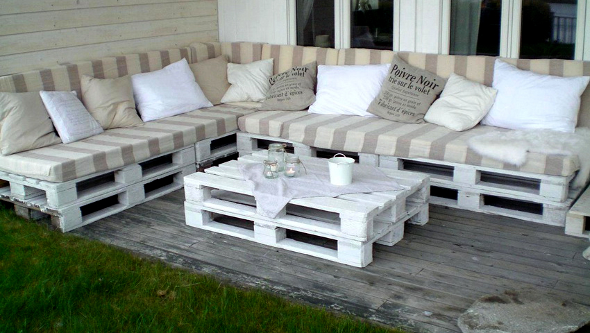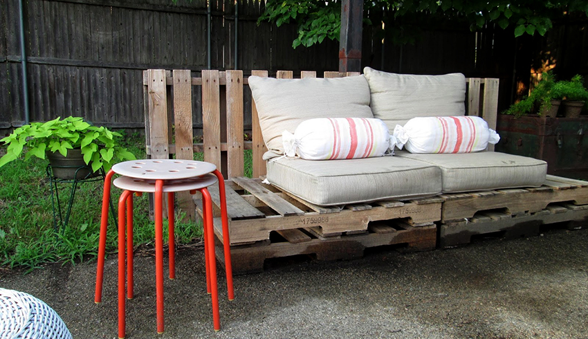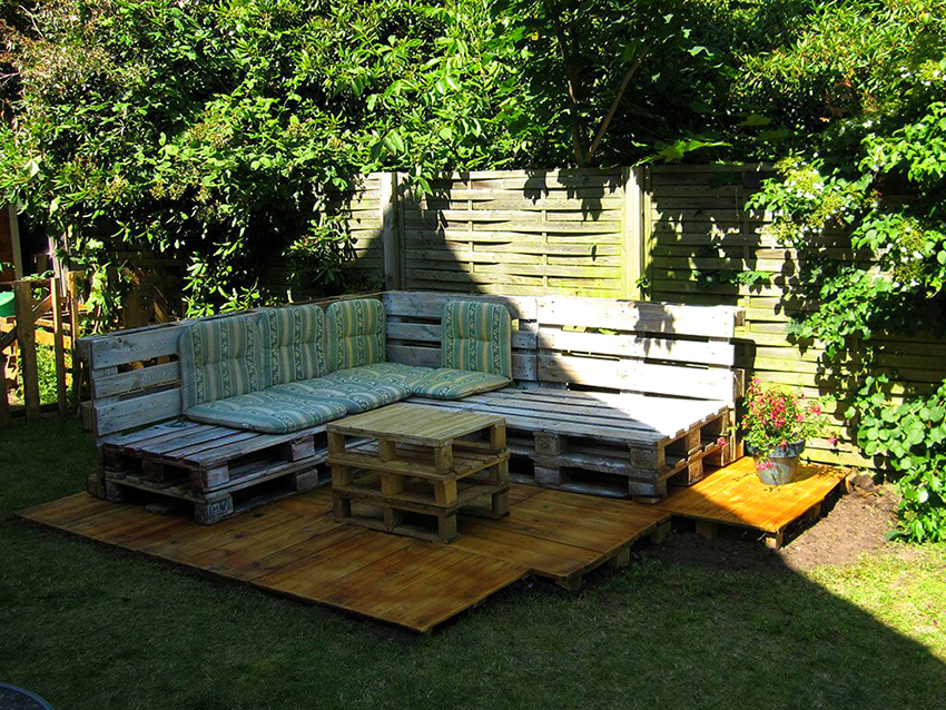 Paletten sind sehr beliebt für die Selbstmontage von Gartenmöbeln. Diese Produkte bleiben oft nach der Renovierung des Hauses erhalten, so dass es ziemlich einfach ist, sie zu bekommen. Paletten haben den Vorteil, dass sie einfach zu handhaben sind. Ein kleines Sofa kann aus Paletten hergestellt werden.
