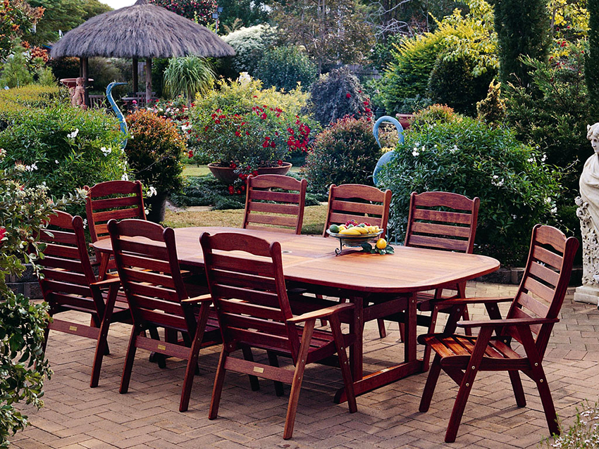 Gartenmöbel aus Holz eignen sich am besten für private Bereiche im Landhausstil. Strukturen aus Holz werden mit speziellen Schutzmassen behandelt. Dies ermöglicht es, ihre technischen Eigenschaften erheblich zu verbessern und ihre Lebensdauer zu verlängern.