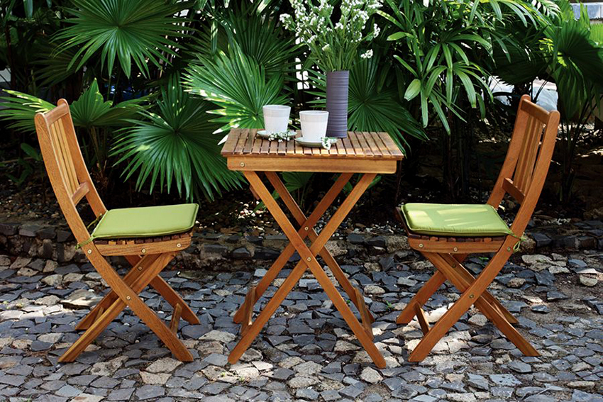 EPLARO. Ein Set, das alle notwendigen Gartenmöbel enthält. Das Herstellungsmaterial ist in diesem Fall Holz. Das Set besteht aus einem Tisch, 2 Stühlen, einem Hocker und zusätzlichem Grillzubehör. Bei Bedarf können Sie Kits erwerben, die Sonnenliegen und anderes Zubehör enthalten. Die Möbel für das Sommerhaus Ikea Applaro sind zusammenklappbar, sodass Sie die Position leicht ändern und bei schlechtem Wetter ins Haus stellen können.
