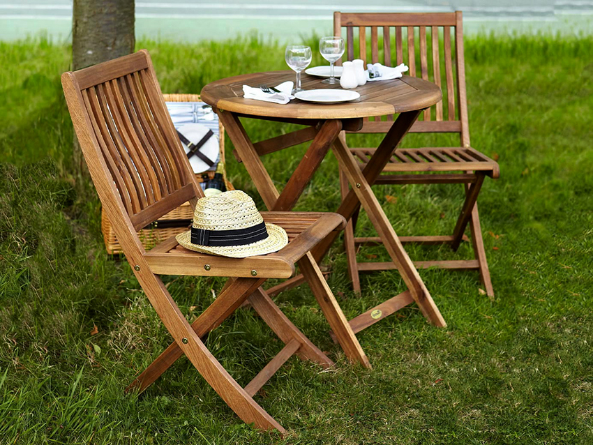 Akazie.Produkte aus diesem Material haben akzeptable Kosten. Trotzdem werden Tische und Stühle aus Akazie als langlebig eingestuft. Sie sind sehr langlebig und halten mechanischen Stößen stand. Außerdem müssen Sie wissen, dass sich Akazienmöbel sowohl in heißen als auch in feuchten Klimazonen gleich gut anfühlen.