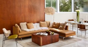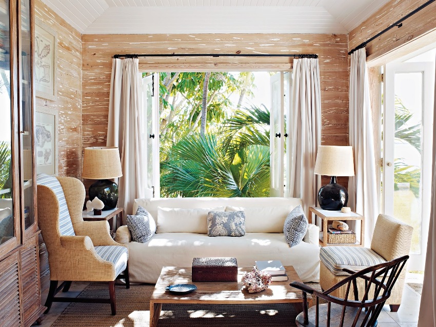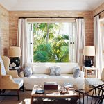 Wenn Sie Bambus im Innenraum des Wohnzimmers verwenden, müssen Sie zusätzlich auf die Möbel achten. Es wird empfohlen, natürliche Holzprodukte zu bevorzugen. Unter den Materialien, die am häufigsten für die Polsterung von Sofas und Sesseln verwendet werden, wird Leinen oder Leder verwendet.