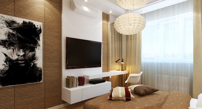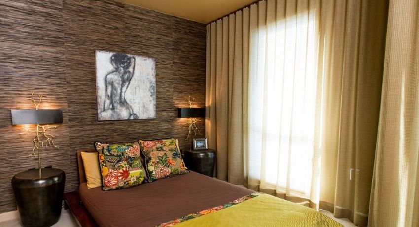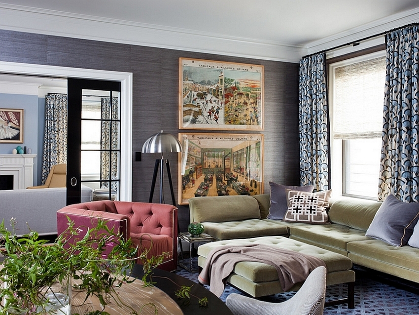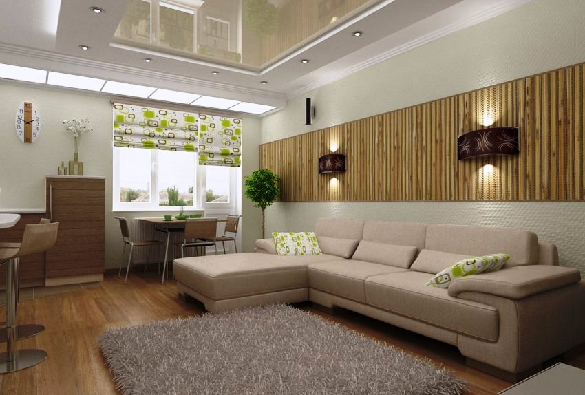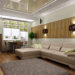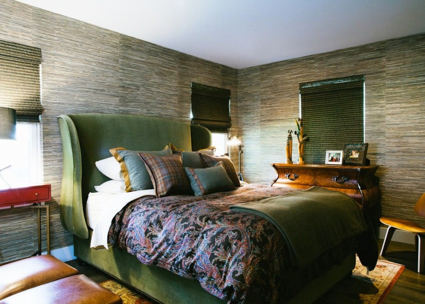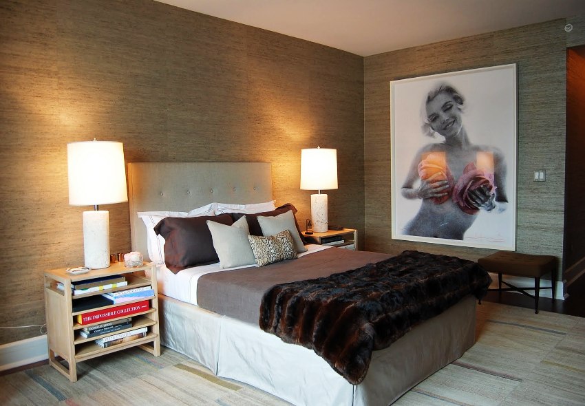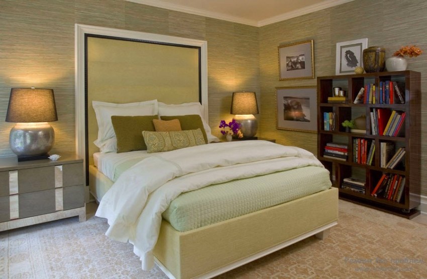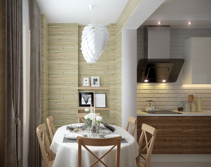 Die Textur und die interessante Farbe der Bambustapete ermöglichen es, den Raum zu zonieren und einzelne Innenelemente hervorzuheben