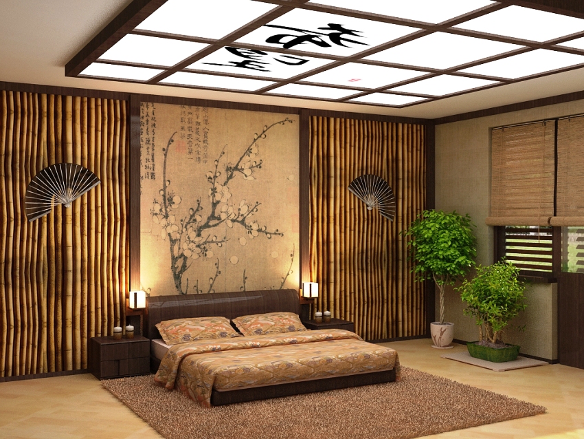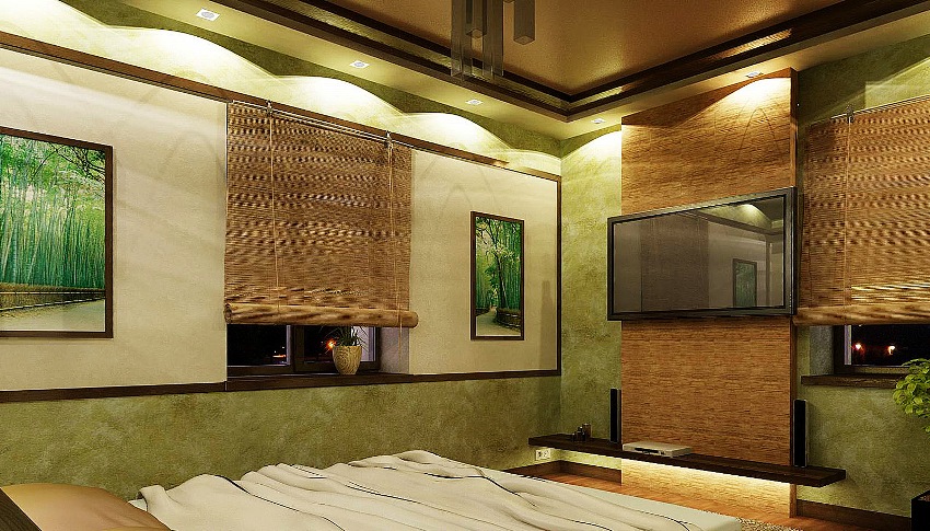 Hilfreicher Tipp! Bambustapeten können nicht nur als grundlegende Wandverkleidung verwendet werden. Sie können eine Hilfsfunktion erfüllen, wenn sie das Innere eines Wohnraums schaffen. Mit ihrer Hilfe können Sie jedem Stil Originalität verleihen. Auch dekorative Elemente aus Bambus sehen sehr attraktiv aus.