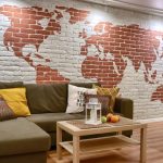 Sie müssen auch sorgfältig Spuren von Baustaub und Zement entfernen und alle Streifen entfernen. Hierzu werden spezielle Lösungen eingesetzt. Danach wird die Oberfläche der Wand geschliffen, alle Nähte werden gerieben. Ein Bild in einem Rahmen aus einem breiten Baguette oder ein Foto eignet sich als Dekor für diesen Hintergrund.